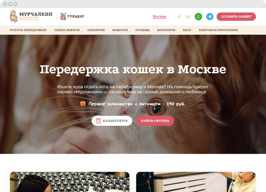 «Мурчалкин» — онлайн-сервис для поиска передержки кошек. Внедрена автоматизация обучения исполнителей, а также модель динамического ценообразования для регулирования спроса на рынке.